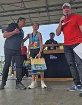 Remise de la médaille par le président Didier Lacroix, plein de cadeaux dont le nouveau maillot du Stade Toulousain, son record sur 10 km, elle n'a pas fait le déplacement pour rien !